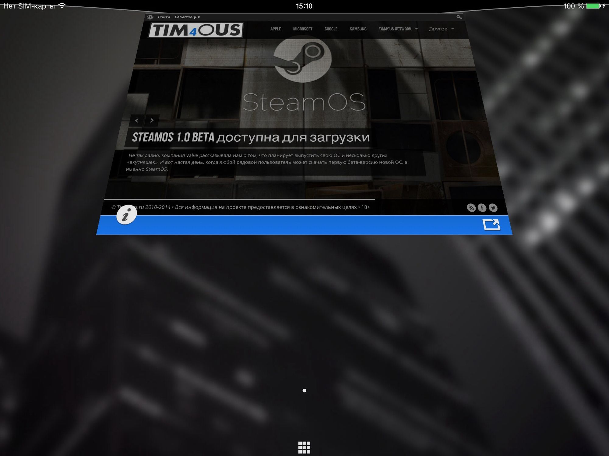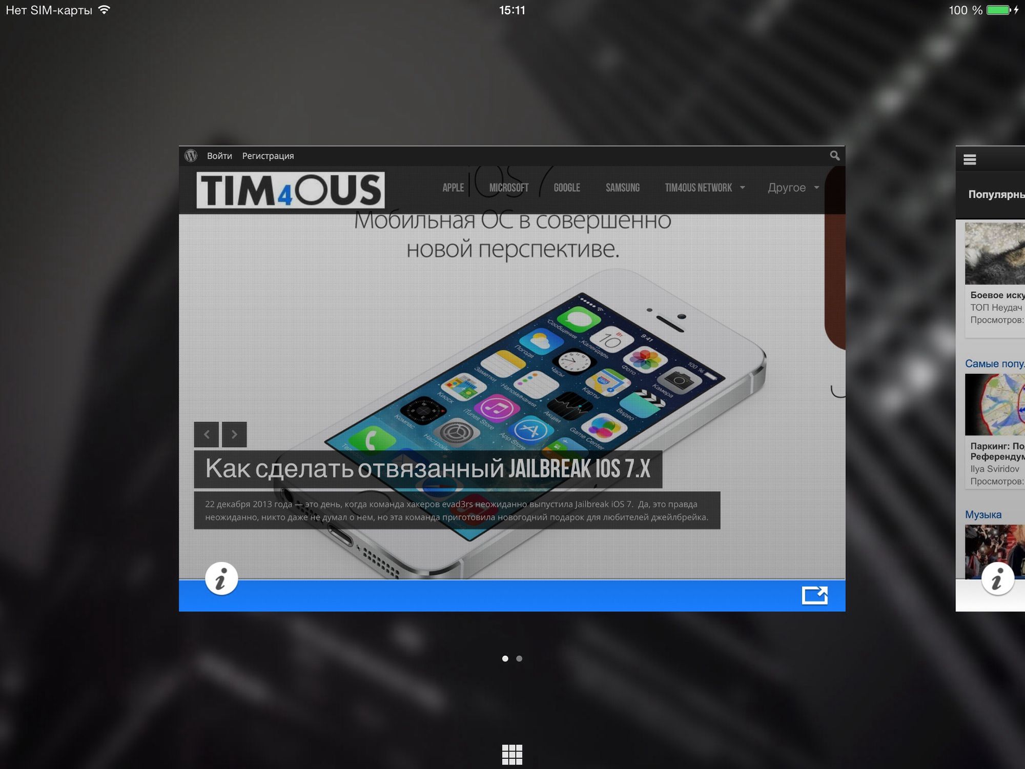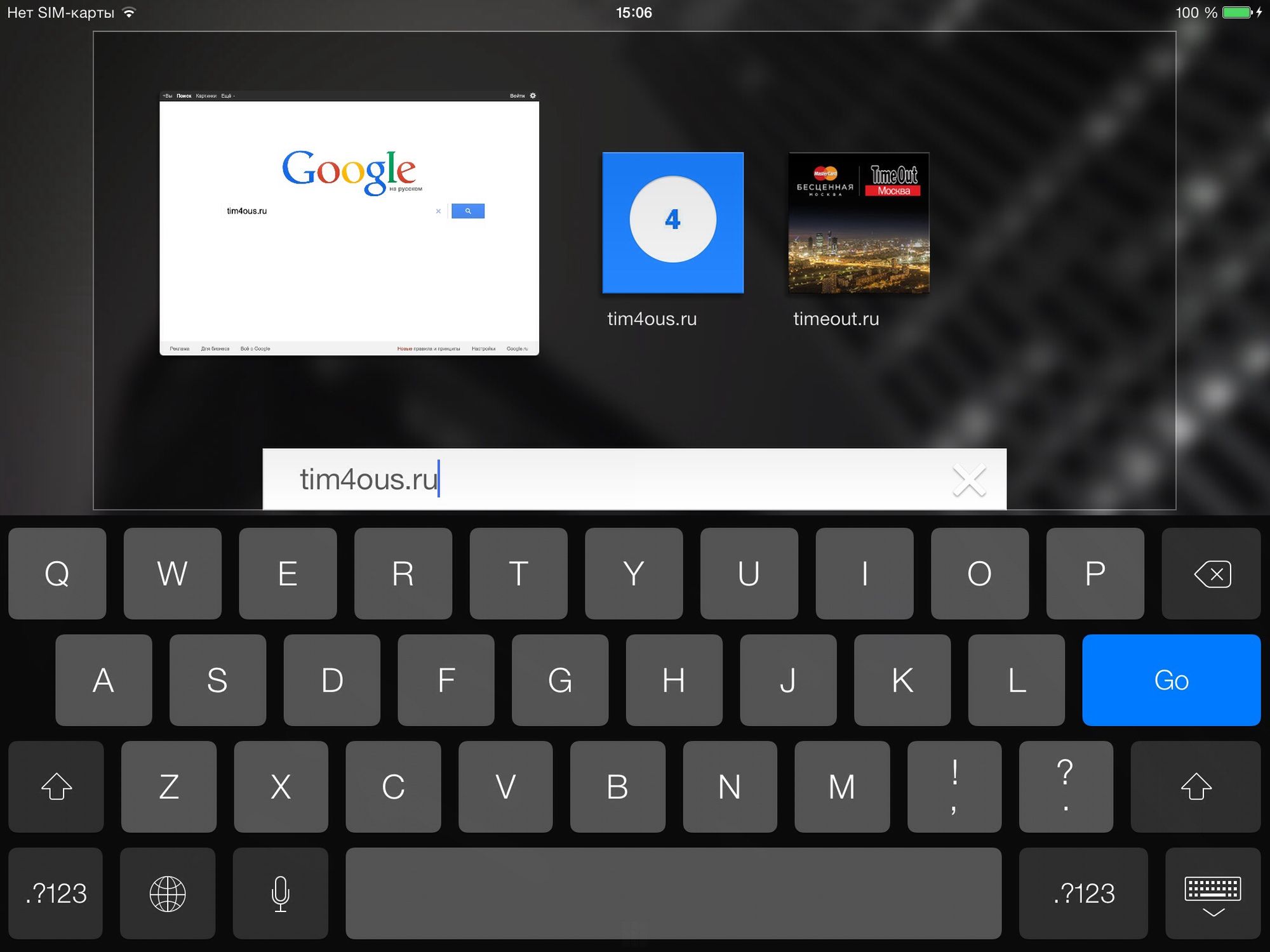 Система вкладок устроена также, как многозадачность в iOS 7. Чтобы свернуть вкладку, ее нужно потянуть резко вверх. Также здесь можно проверить сайт на безопасность и "зашарить" страницу в социальных сетях.