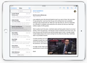 Программисты изменили в новой версии iOS принцип переключения между запущенными программами. Кроме того, внедрена функция Split View, посредством которой пользователь может запускать дополнительное приложение, не выходя из текущей программы, с которой он работает в данный момент времени. Это очень удобно, поскольку пользователь теперь сможет открыть окно web-браузера на половину экрана, а вторую половину занять под "Twitter" или "Календарь". Slide Over даёт возможность разделять экран на отдельные части с любыми соотношениями (к примеру, для браузера можно выделить 80% пространства, а для "Календаря" – 20%).