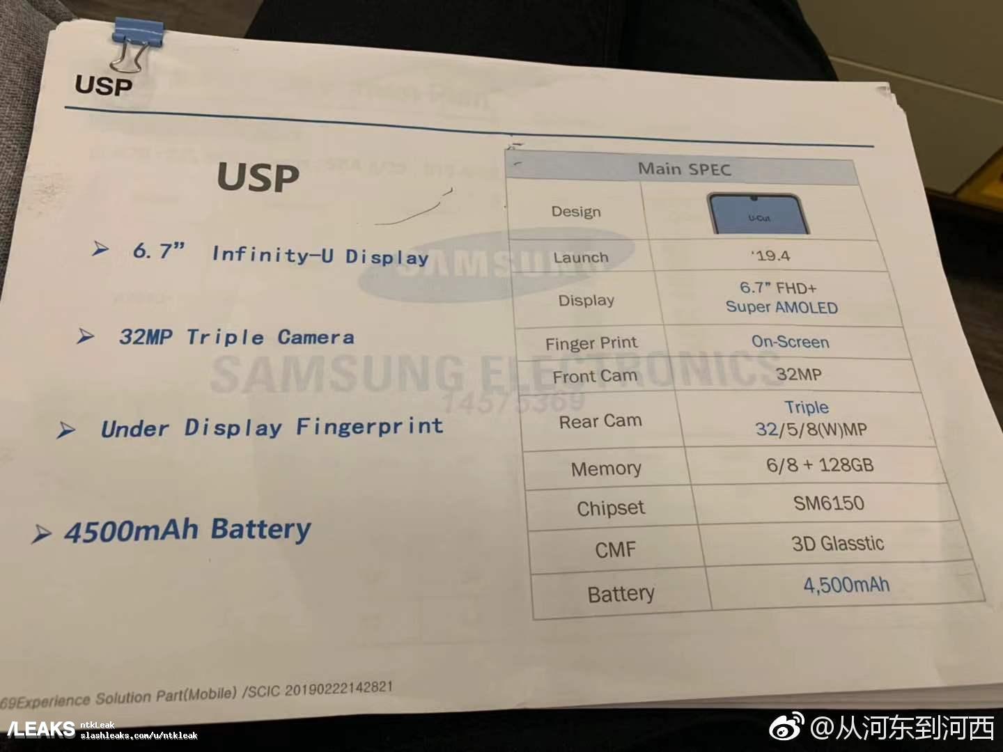 Нас также ждёт «чёлка» в духе Infinity-U, на которой уютно расположится фронтальная камера. На задней части устройства — система из трёх камер — основной с разрешением 35 МП, камеры с датчиком глубины 5 МП и ультра-широкоугольной 8 МП. Смартфон также получит селфи-камеру 32 МП. На задней крышке не будет привычного датчика отпечатков пальцев — в Galaxy A60 он встроен в экран.